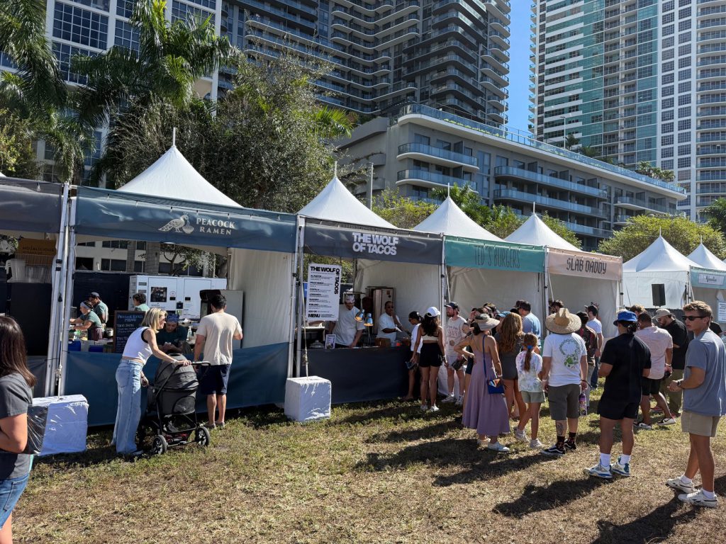 Wir waren gemeinsam mit Marie und Gen Sadakane von der Fake Agency vor Ort und haben uns neugierig (und hungrig) durch die Stände probiert. Das Line-up konnte sich sehen lassen: Versailles, Tam Tam, Ted’s Burgers, Liger’s, Miami Slice, KYU, Shiso, The Wolf of Tacos, Palacio de los Jugos, Peacock Ramen – um nur einige zu nennen. Fast 30 Größen der Miami-Gastronomieszene kamen hier zusammen und zeigten, wie vielfältig und lebendig die lokale Food Culture ist.